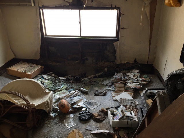 さらに雨風にさらされて屋根や壁が壊れ、雨漏りした場合は汚損・破損がより深刻になっていきます。